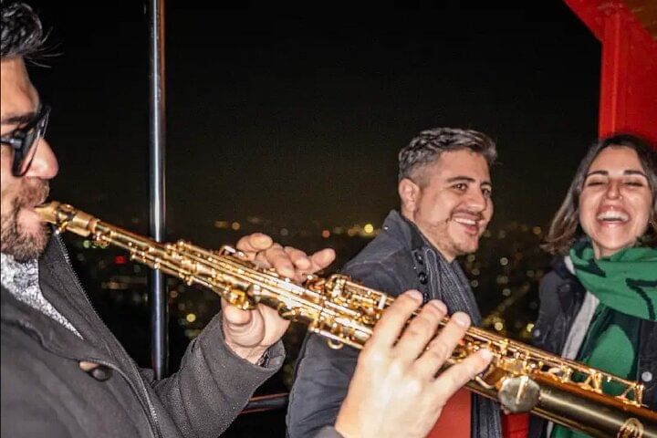 To conclude, descend again by funicular and say goodbye to an evening filled with history, culture, flavors, and music—a memory of Santiago you’ll never forget.