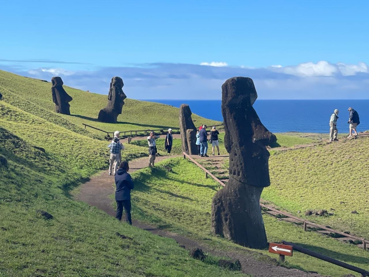 Rano Kau: Begin our tour by heading to Rano Kau, a striking volcano above the Pacific Ocean, with a beautiful freshwater lake nestled in its crater and surrounded by vibrant vegetation.